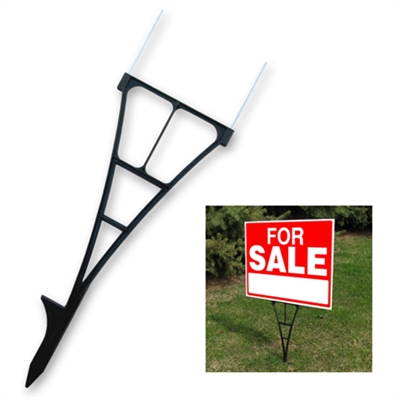 A new alternative option vs. H-Frame Stakes. Spider Stakes offer an improved frame build that features a strong webbed design that stands up against light to medium winds. Spider stakes are easy to install using the installation step peg.