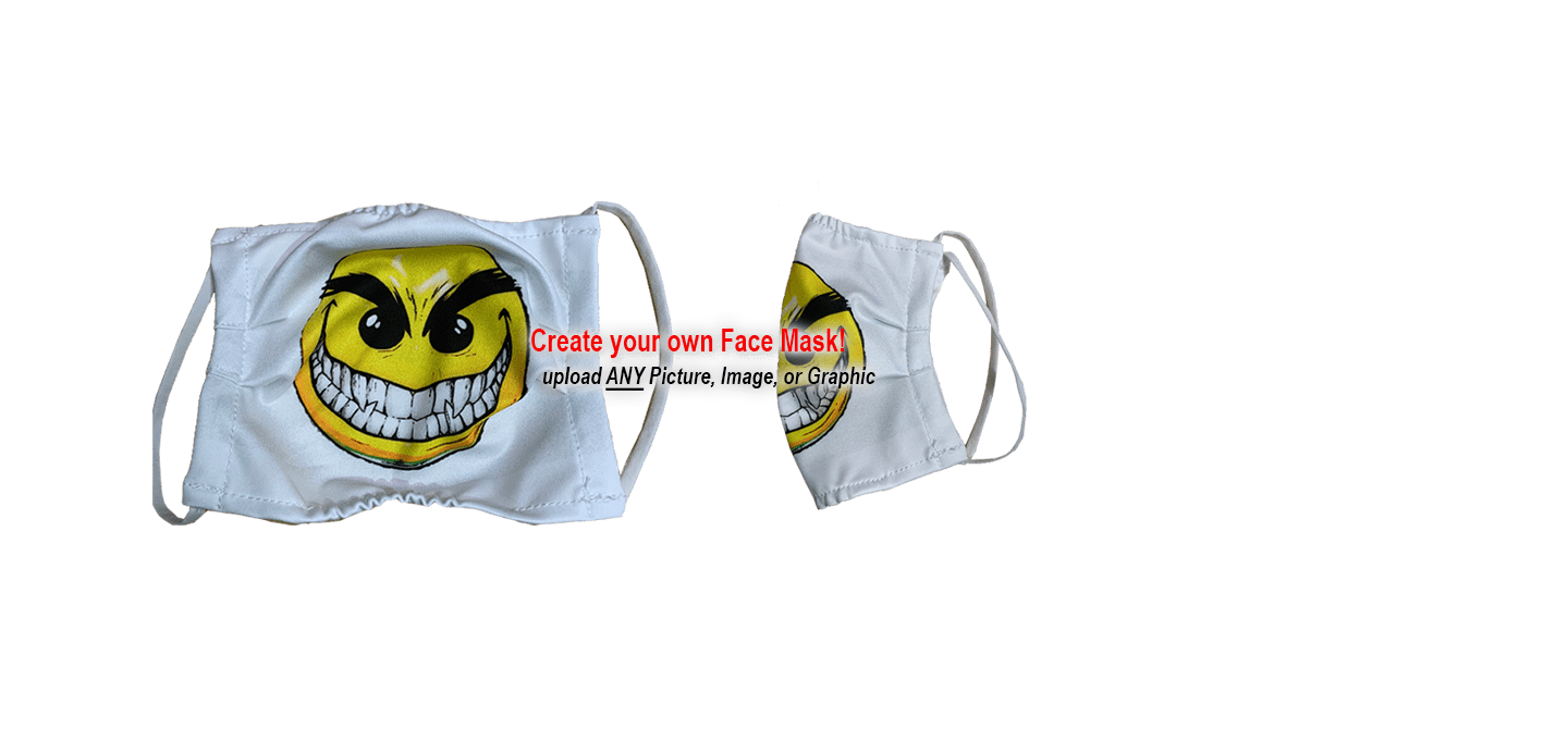 Personalize your Face Mask with Text, logos, images/graphics. Download our mask template to design and layout your own custom mask or upload your images and we will be happy to help create a custom mask!